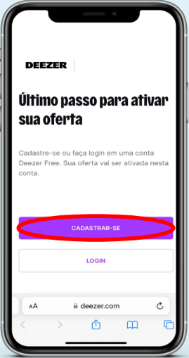 Você vai receber um link por SMS para ativação do Deezer Premium. Clique no link.