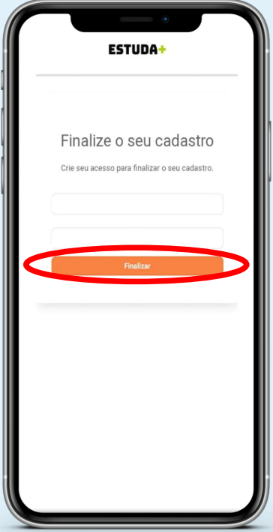 Depois, finalize seu cadastro inserindo um e-mail e senha de sua preferência e clique em “Finalizar”.