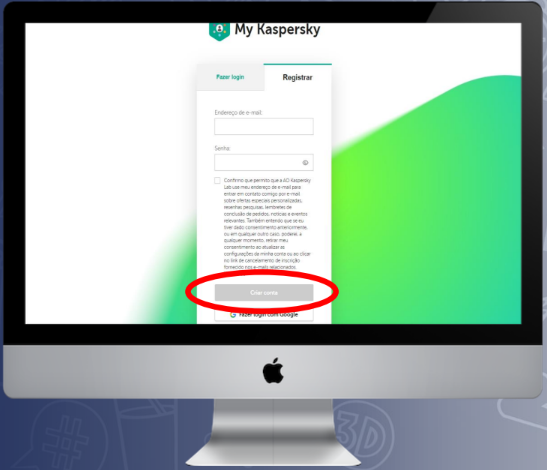 Acesse o site My Kaspersky e registre uma conta com e-mail e senha de sua escolha.