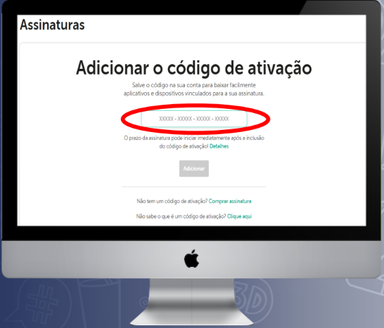 Adicione o código de ativação recebido via SMS. Atenção: Devido à segurança da plataforma, o código deve ser digitado manualmente.