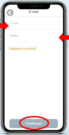 Preencha seu e-mail e senha e clique em “Continuar”.