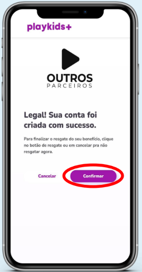 Clique em “Confirmar” para resgatar seu acesso ao PlayKids.