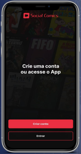 Baixe o app Social Comics e clique em “CRIAR CONTA”.