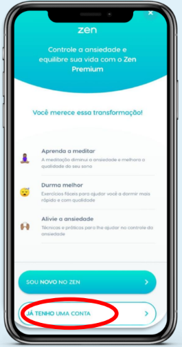 Na tela inicial do aplicativo, clique na opção “JÁ TENHO UMA CONTA”.