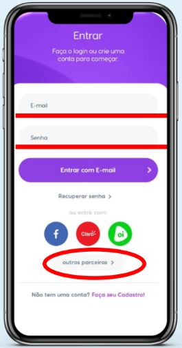 Ao ser redirecionado para a tela de login, clique em “Outros Parceiros”.